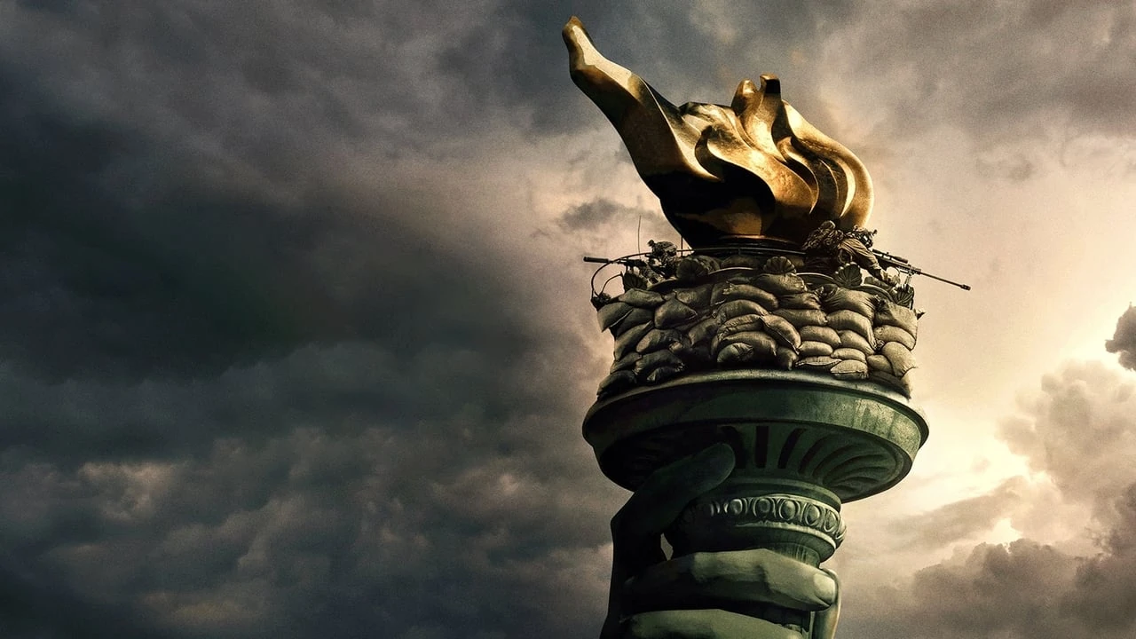 A wide shot of a ruined American landmark, a stark visual metaphor for the destruction of familiar ideals and order.